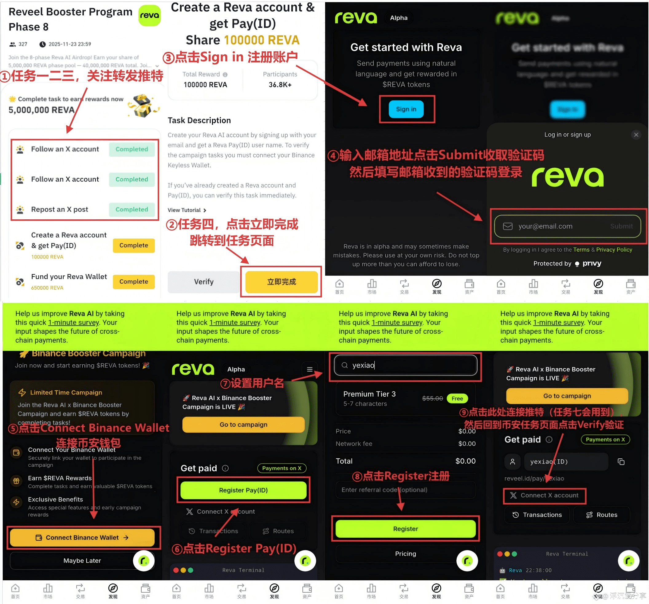 这期Reveel 的任务和第7期完全一样,不过多了任务九,需要给三个不同的朋友转账(金额不限),第8期也是TGE前最后一期了,考虑到现在比较卷,兄弟姐妹们花个5分钟时间尽快完成哦
