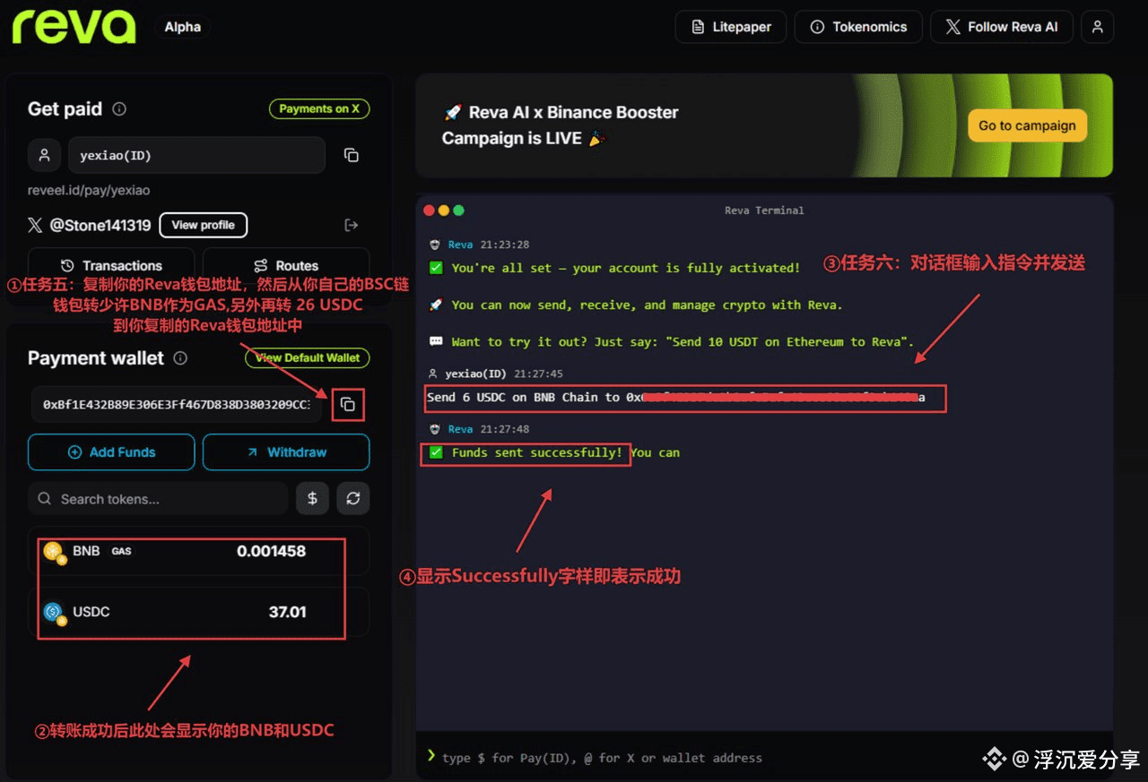 嘿@REVApay_ai ,send 20 USDC on BNB Chain to 你的bsc钱包地址