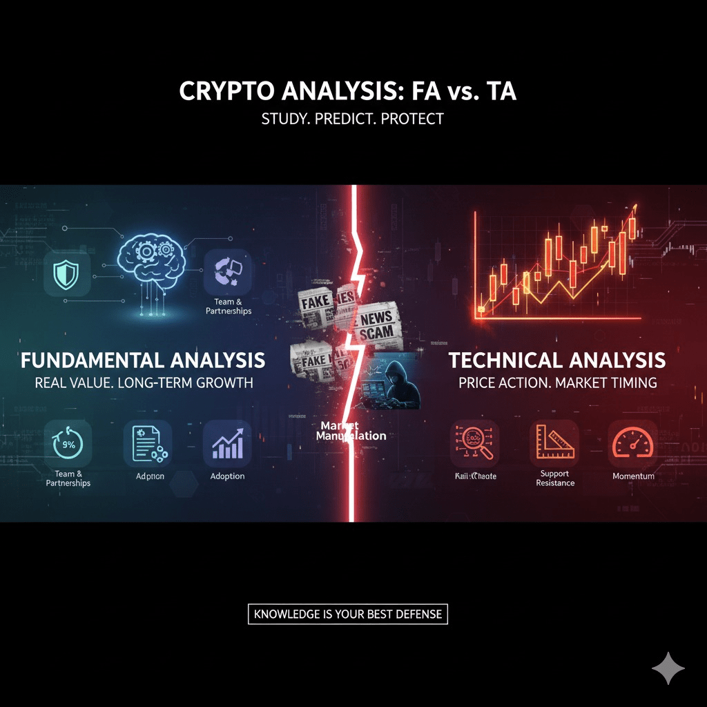Scopri come usare l'Analisi Fondamentale e Tecnica per studiare e prevedere i mercati crypto. Scopri come le notizie false manipolano i prezzi e come proteggere i tuoi investimenti usando strategie intelligenti.