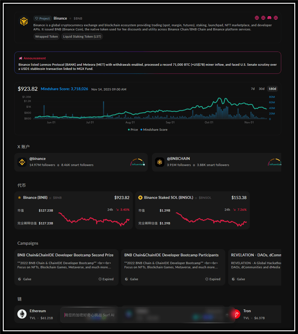 Nel 2025 nel settore delle criptovalute, Surf è l'unico in grado di fornire un 'ciclo di analisi complessivo', aiutandoti a estrarre informazioni Alpha dall'oceano informativo, anziché affogare in esso.