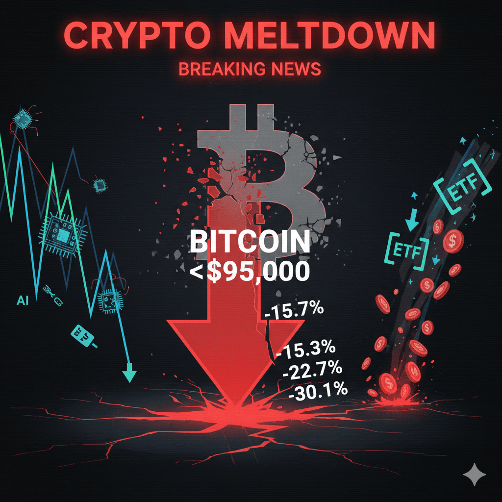 Bitcoin è improvvisamente sceso sotto i 95.000$, toccando un minimo di sei mesi, dopo una massiccia svendita sia nel mercato dell'IA che nelle azioni tecnologiche. Questo ha creato un forte umore "risk-off" — il che significa che gli investitori si sono allontanati da asset rischiosi come le criptovalute.