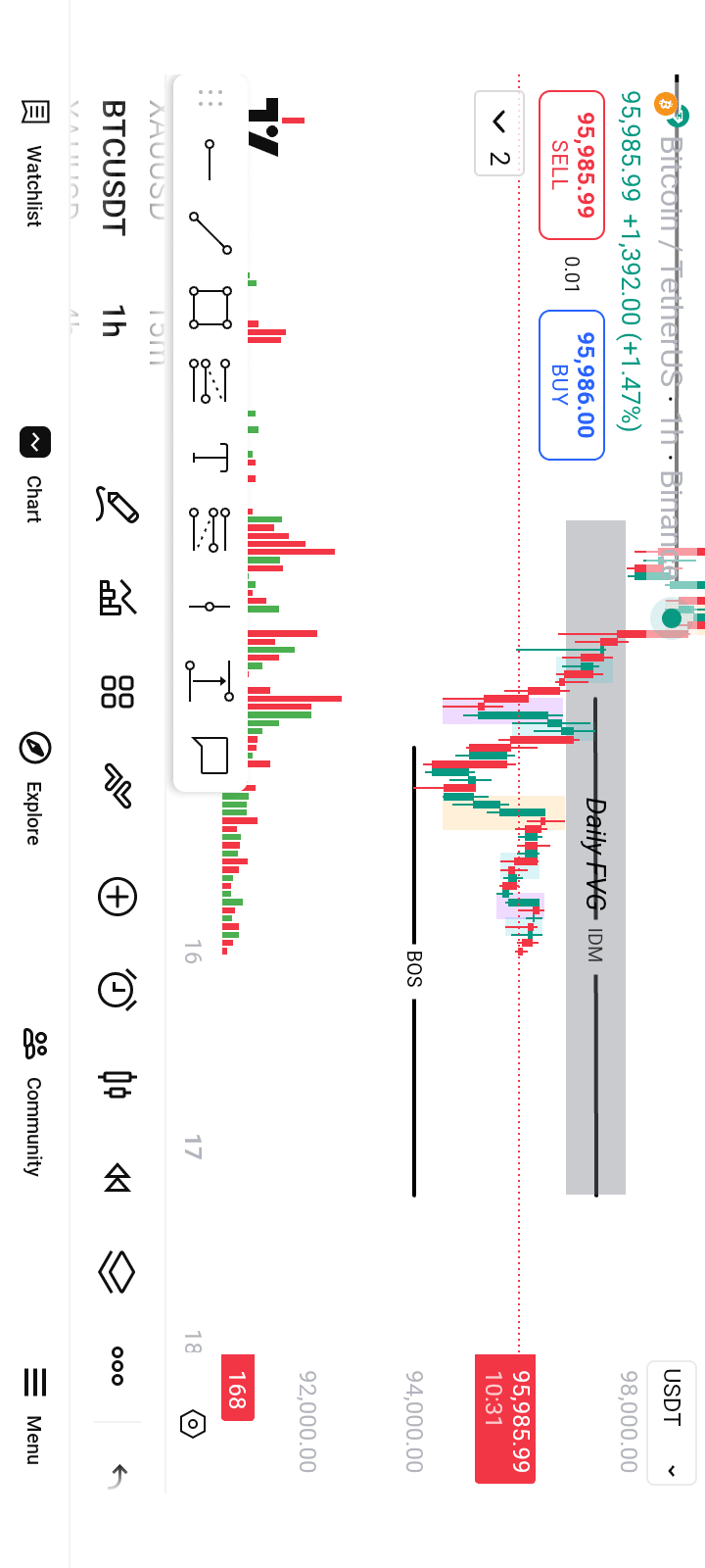 Quando tocchi $BTC fvg giornaliero aspetta conferma su un intervallo di tempo inferiore come M15 e M5 MSS