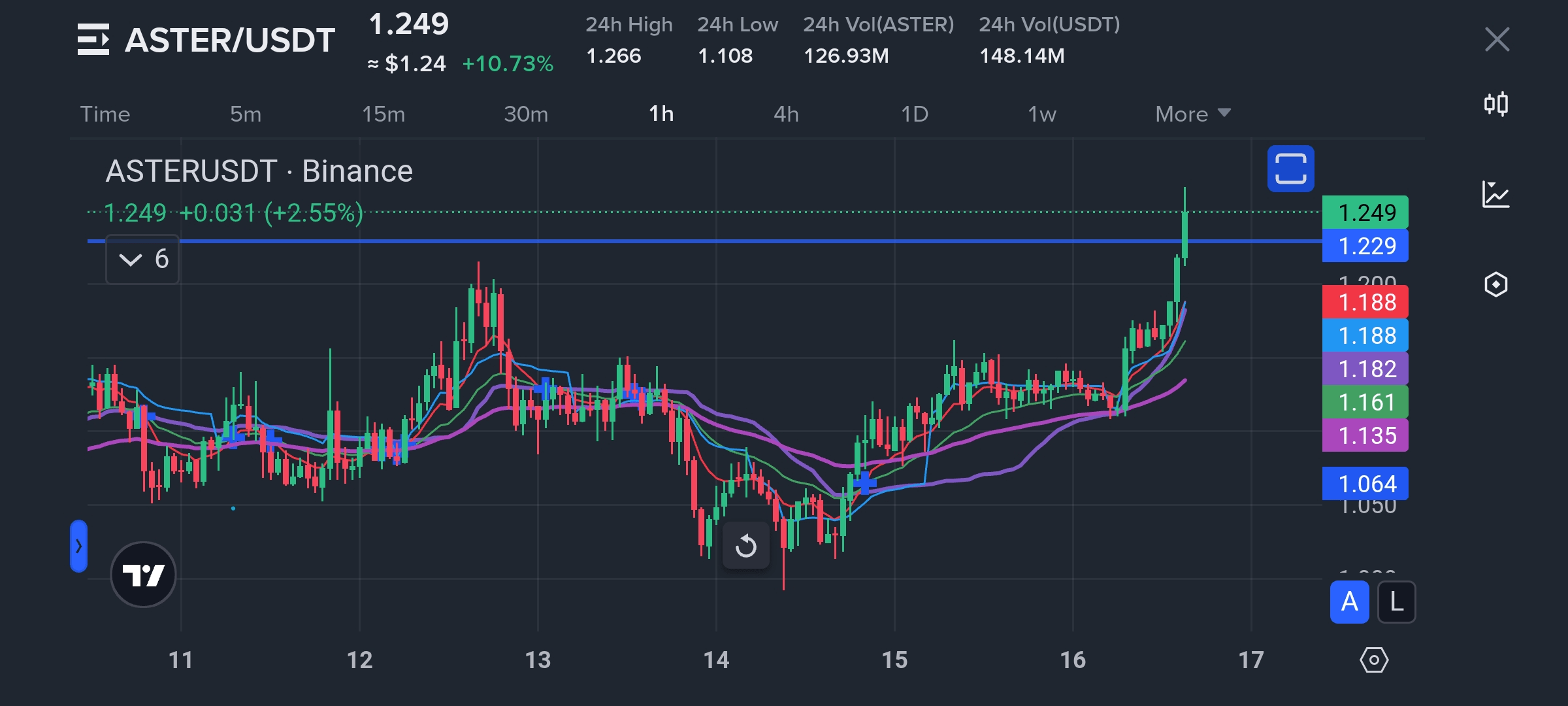 A partire dal 16 Novembre 2025, ASTER sta negoziando a $1,14 (+9,26% in 24h).