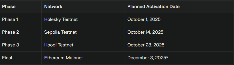 Il deployment segue diverse fasi di testnet su Holesky, Sepolia e Hoodi, con un programma di bug bounty di quattro settimane che offre ricompense fino a $2 milioni prima del rollout finale.