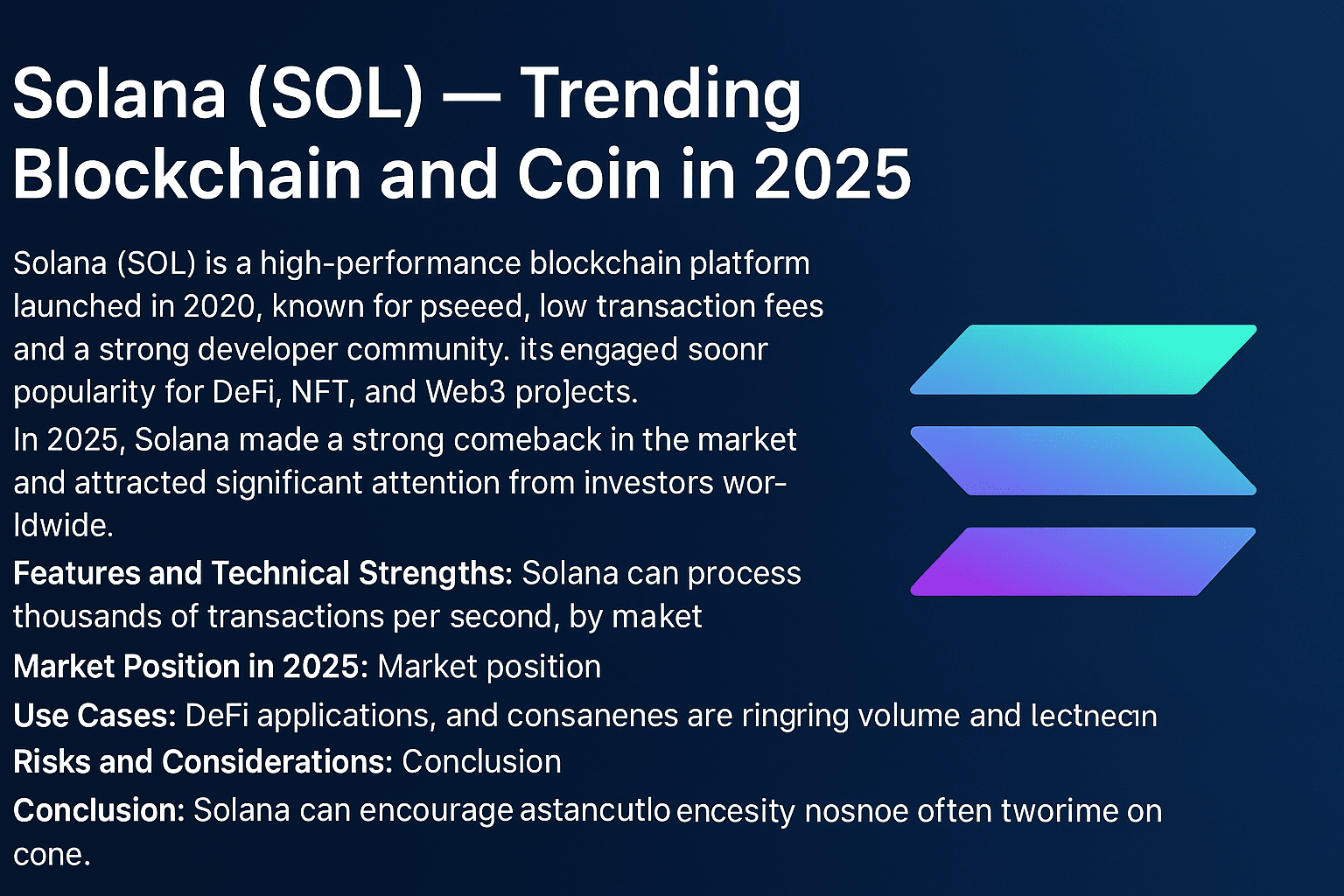Possono verificarsi problemi di rete o potenziali rischi per la sicurezza, ma il team di Solana sta attivamente migliorando gli aggiornamenti e le misure di sicurezza.