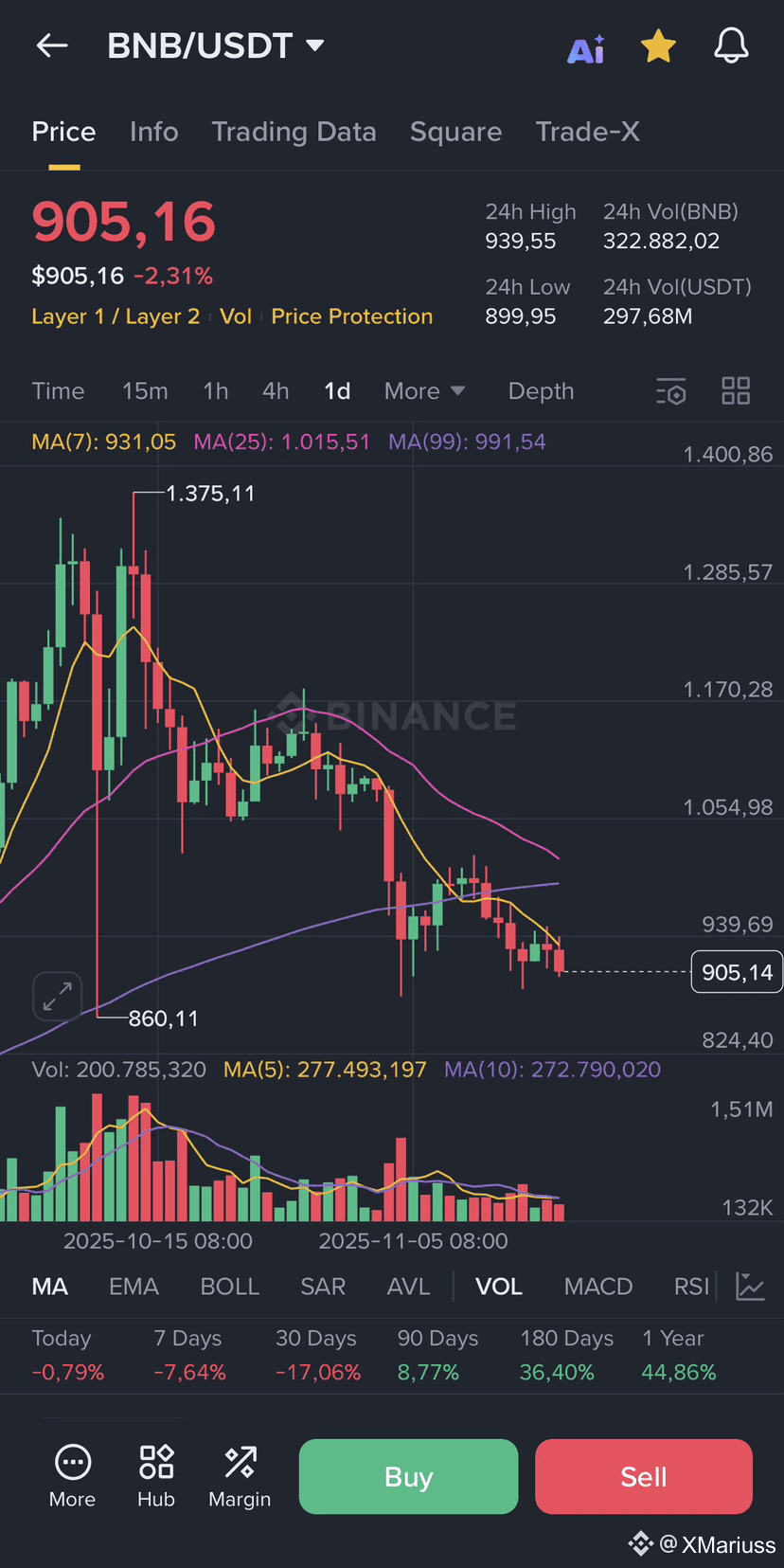 The pain in the crypto market is real, and even a powerhouse like $BNB Token hasn't escaped the red wave. BNB recently shattered the key psychological support of $1,000, leaving many traders anxious.