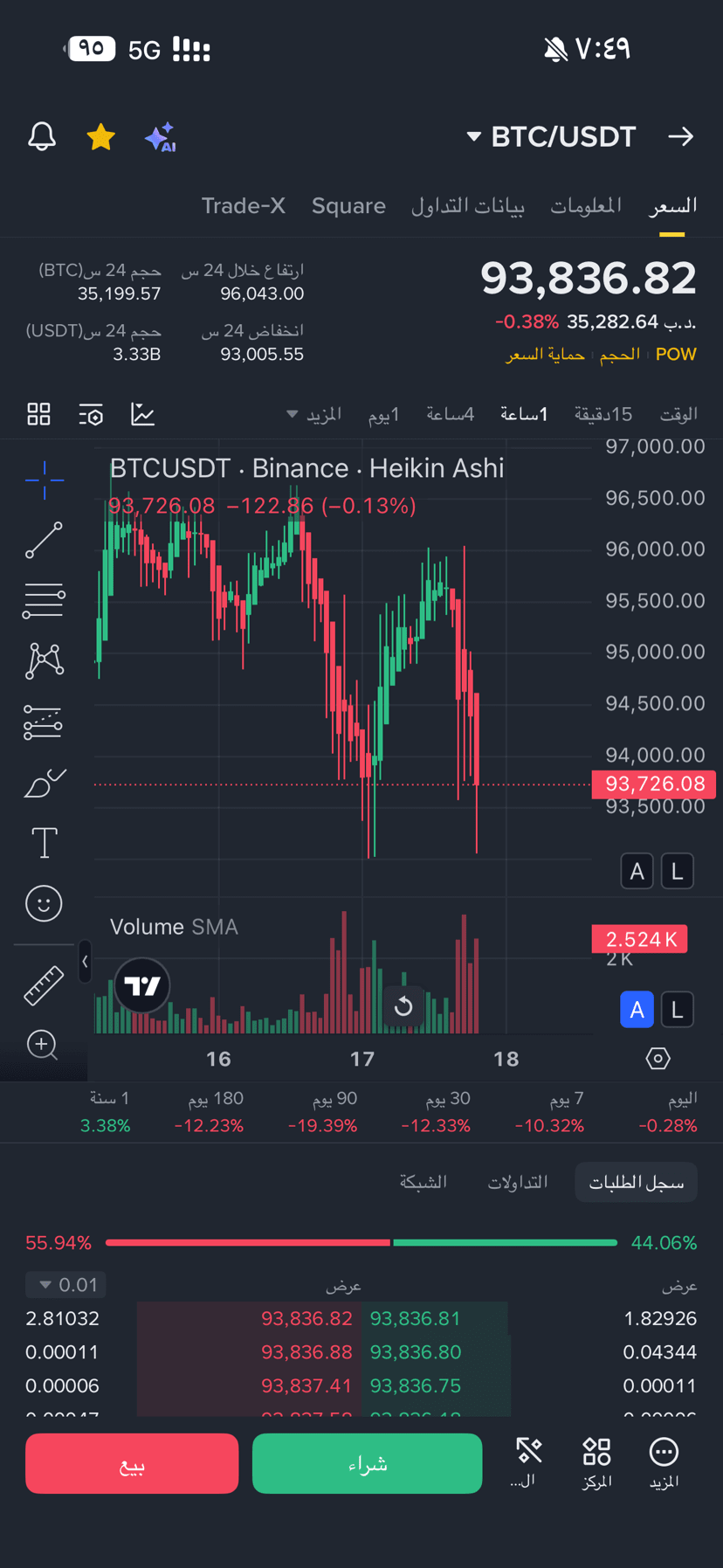 Finché il prezzo è sotto 94.500, la tendenza rimane negativa.
