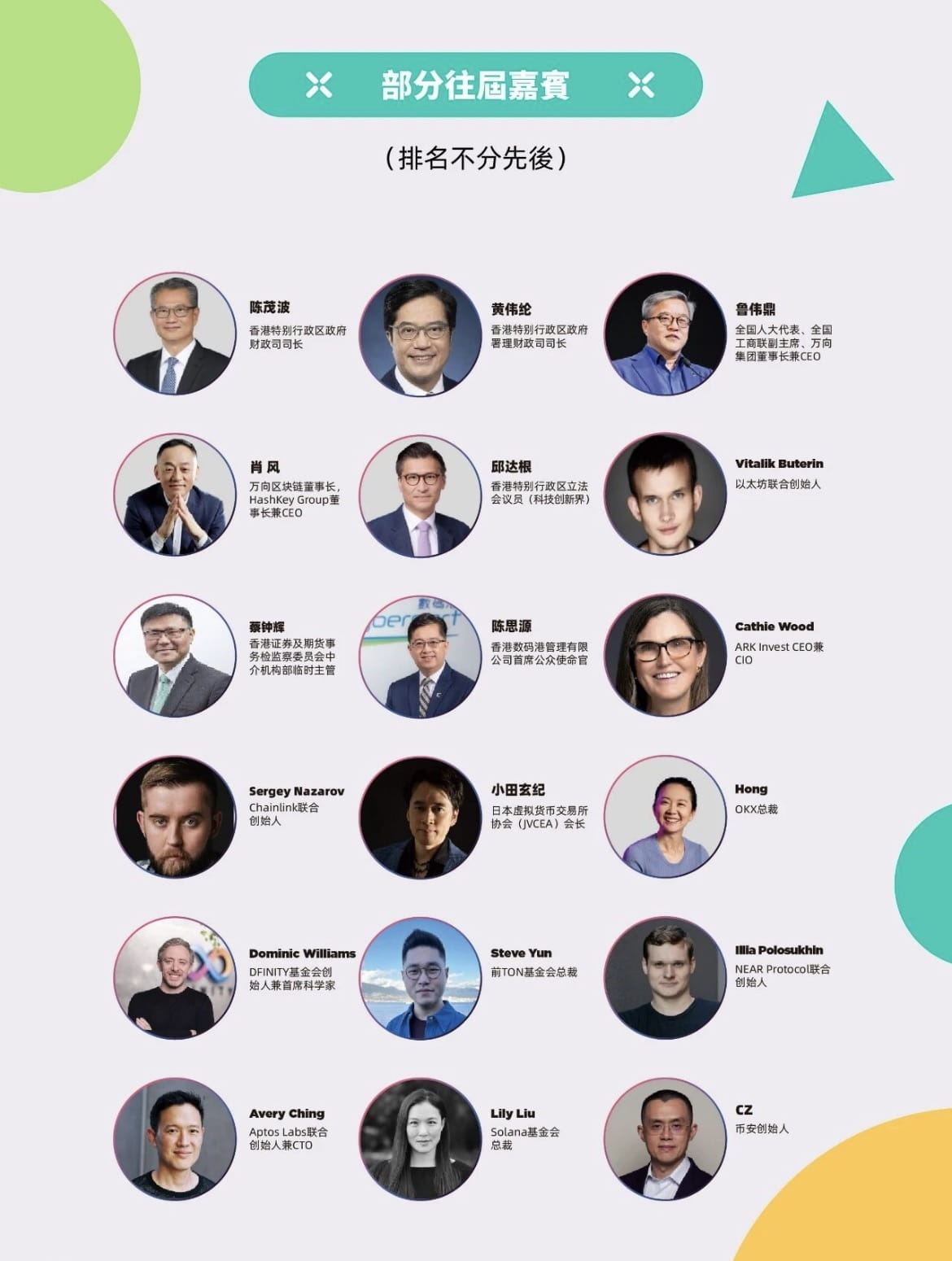 Il Segretario alle Finanze del Governo della Regione Amministrativa Speciale di Hong Kong, Paul Chan, il co-fondatore di Ethereum Vitalik Buterin, il CEO e CIO di ARK Invest Cathie Wood, e altri hanno ricoperto il ruolo di relatori all'evento.