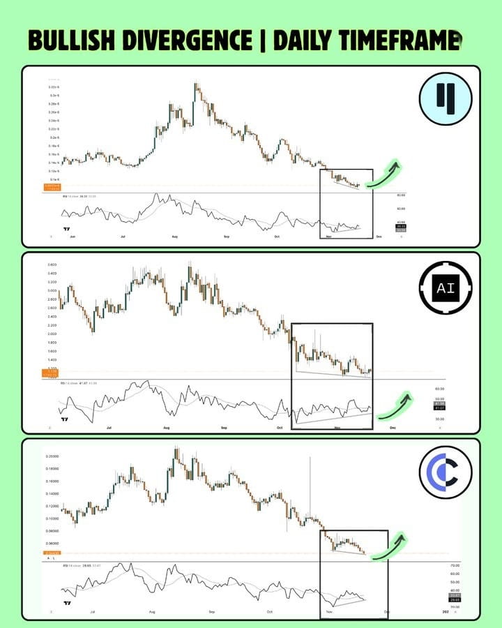 La gestione del rischio viene prima: anche i migliori modelli tecnici falliscono a volte. La dimensione della posizione conta. Se sei già esposto a questi asset, mediare verso il basso nella divergenza può abbassare il tuo costo medio e posizionarti per ritorni più forti se il ribaltamento si realizza. Ma questo ha senso solo se hai convinzione nei progetti sottostanti e puoi permetterti di essere paziente.