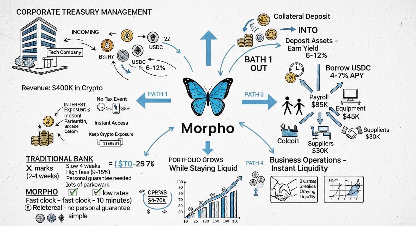 Morpho elimina completamente questa falsa scelta. Le aziende possono mantenere le proprie posizioni in criptovalute, guadagnare rendimento su quelle partecipazioni e accedere a liquidità istantanea ogni volta che sorgono esigenze operative. Questo non è un'ottimizzazione teorica—è una gestione pratica del tesoro che dozzine di aziende già implementano quotidianamente.