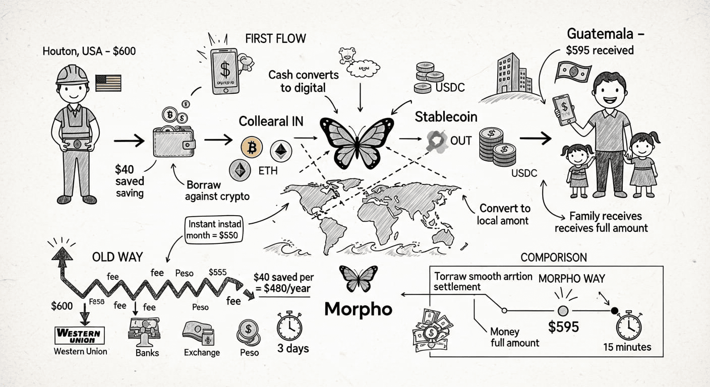 Ogni mese, Maria si sveglia alle 5 del mattino a Houston, lavora un doppio turno pulendo uffici e invia 600 dollari a casa alla sua famiglia in Guatemala. Quando quel denaro arriva tre giorni dopo, 45 dollari sono svaniti—mangiati dalle commissioni di Western Union, dai rincari del tasso di cambio e dalle spese intermediarie. Sono 540 dollari all'anno, all'incirca l'equivalente di un mese di rimesse, rubati da un sistema progettato un secolo fa. Morpho sta riscrivendo questa storia per milioni di persone come Maria.