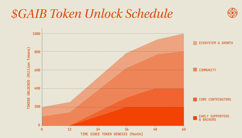 Supportato dai dati. Ad oggi, 20 novembre 2025, il prezzo di GAIB è di circa zero virgola sedici dollari, con una capitalizzazione di mercato vicino ai trentacinque milioni di dollari e un volume di scambi nelle ultime ventiquattro ore superiore a undici milioni. Il limite massimo di fornitura è di un miliardo di token, con circa il venti percento in circolazione al momento del lancio. Quaranta percento è destinato alla comunità, compresi gli airdrop per i partecipanti precoci, il che è importante per costruire fedeltà. Ecco una visualizzazione della distribuzione dei token per comprendere la struttura.