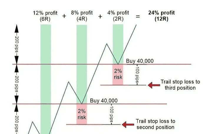 La chiave per un aumento efficace delle posizioni a piramide è mantenere un ragionevole rapporto rischio-rendimento.