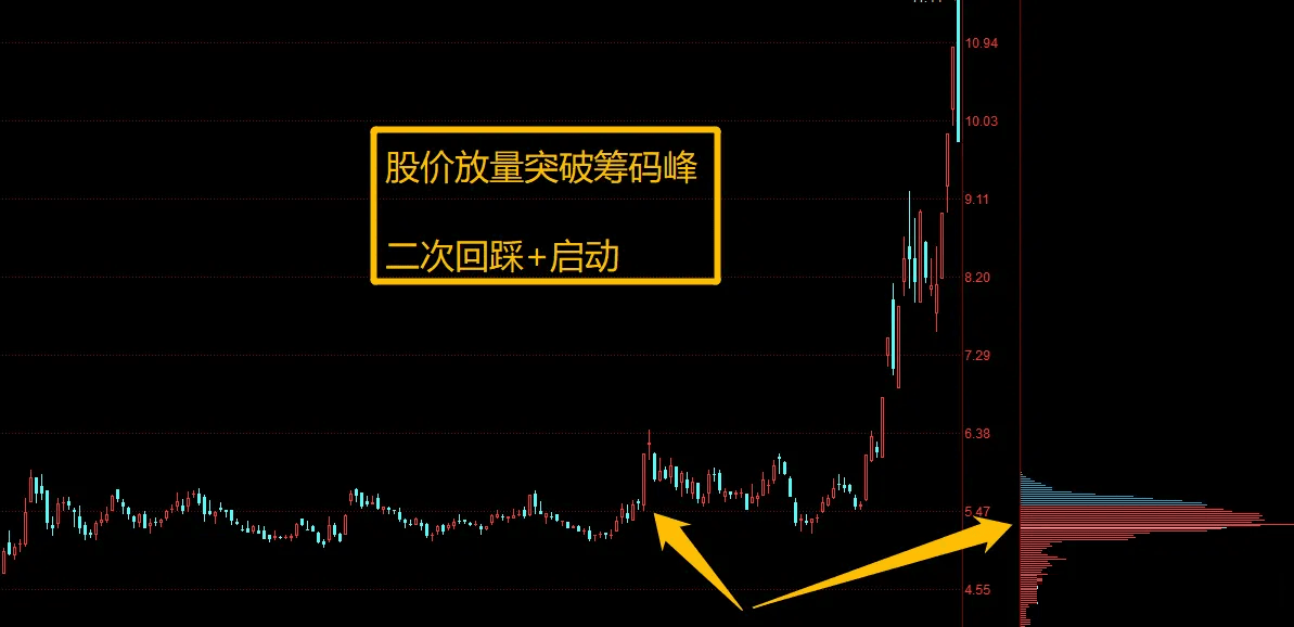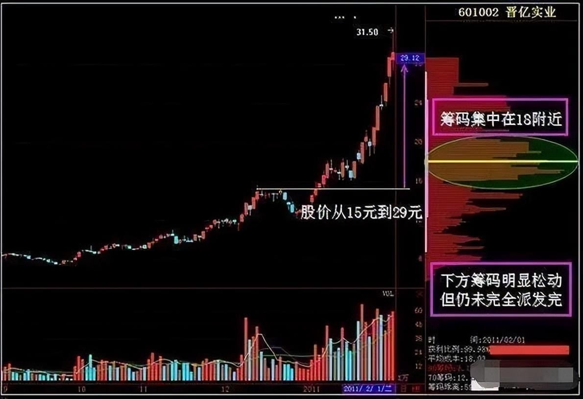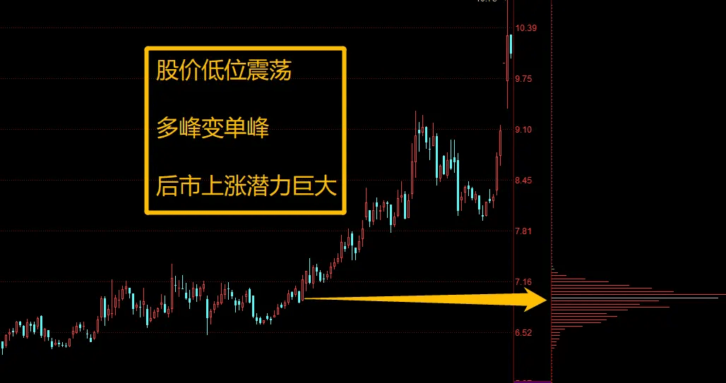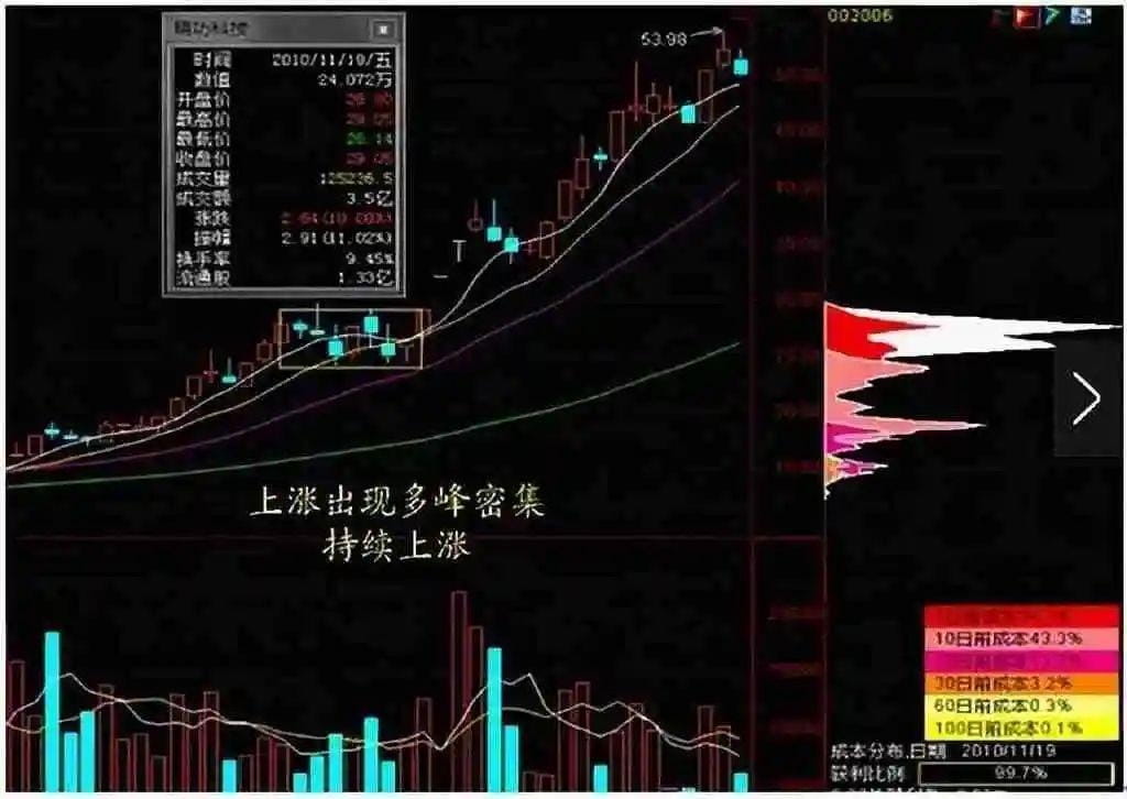 Quando il prezzo delle azioni ha subito una lunga fase di consolidamento, si forma una distribuzione dei costi di movimento concentrata a picco basso, mentre il prezzo delle azioni rompe questa concentrazione a picco: è un segnale di rialzo!