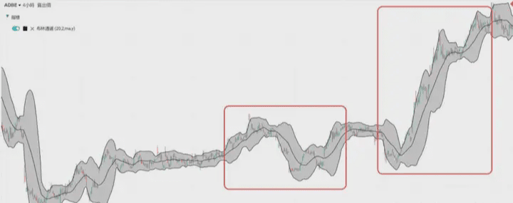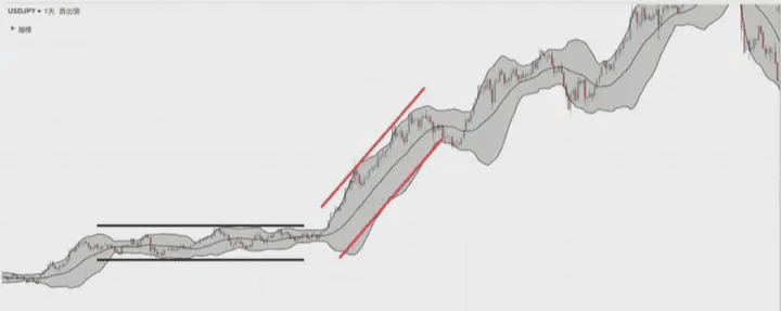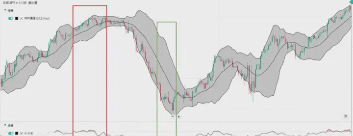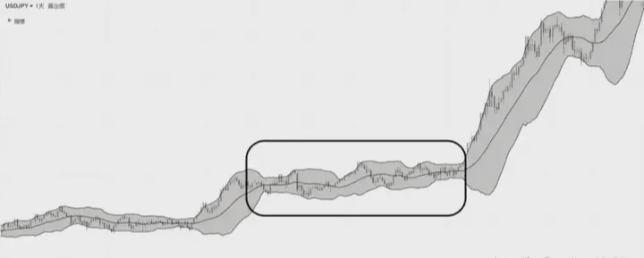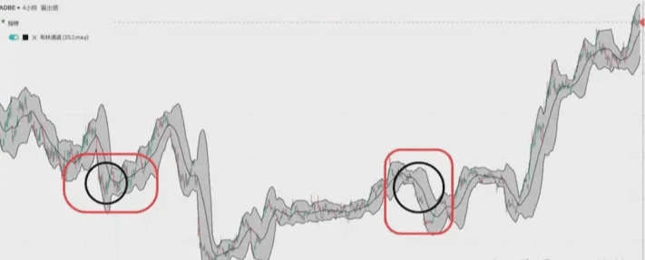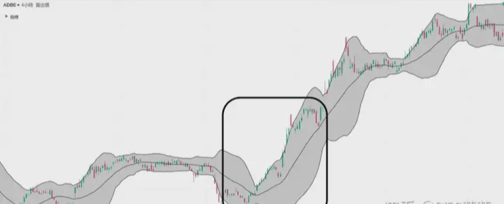 Espansione del canale di Bollinger: quando la banda superiore e la banda inferiore del canale di Bollinger si separano rapidamente, si espandono, ciò indica anche che la volatilità del mercato aumenta, il che significa che le fluttuazioni dei prezzi attuali sono molto forti.