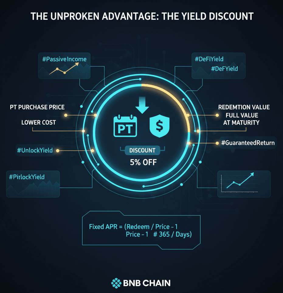 Acquistando il PT a sconto e mantenendolo fino alla scadenza, hai la garanzia di un ritorno fisso noto nell'asset sottostante (ad esempio, più USDT) al termine del lock-up.