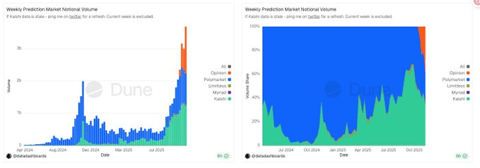 Il volume di scambio di Opinion è balzato al primo posto (1,46 miliardi di dollari/settimana)