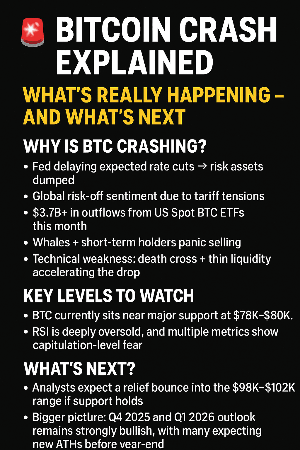 Bitcoin ha ora annullato tutti i suoi guadagni del 2025 — scendendo da $126K → sotto $82K in poche settimane e portando via oltre $1T dal mercato totale delle criptovalute.