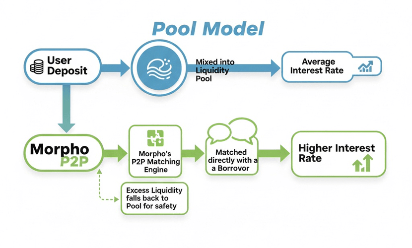Per anni, il "modello di pool" utilizzato da giganti come Aave e Compound è stato il default. È affidabile, ma ha un'inefficienza fondamentale. I tuoi asset depositati sono mescolati in un enorme pool con quelli di tutti gli altri. Il tasso d'interesse è una media, un compromesso che non riflette sempre la migliore corrispondenza possibile tra prestatori e mutuatari.