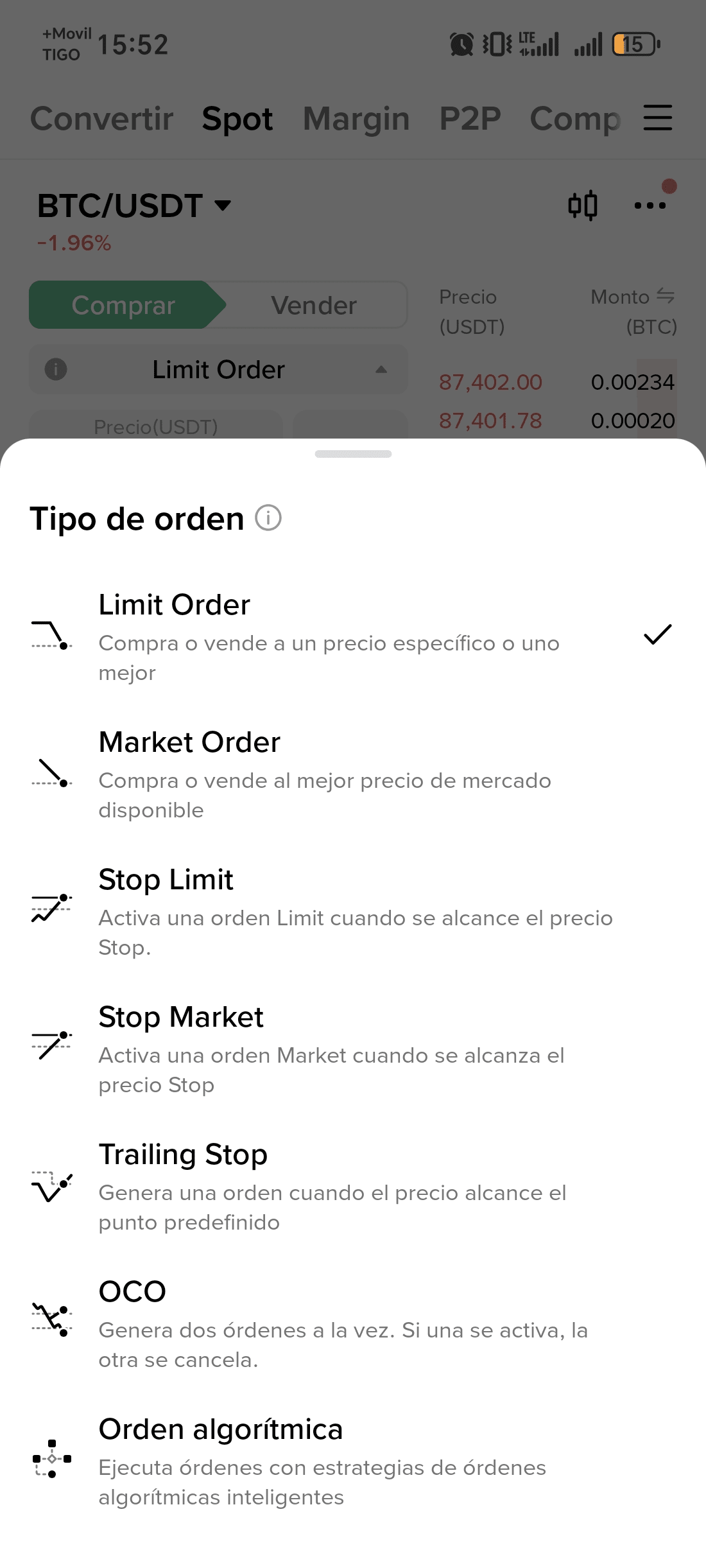 * Configuri un'Ordine Limit: Il tuo ordine si attiva e aspetta. Se il prezzo tocca $86,000, si esegue automaticamente! Se il prezzo sale, il tuo ordine rimane inattivo fino a quando non lo annulli o si realizza.