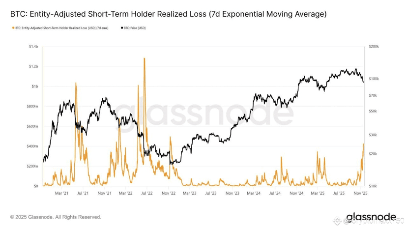 Il mercato si sta avvicinando a una fase di grande panico? Il mercato delle criptovalute sta vivendo una pressione senza precedenti da parte dei trader a breve termine (#STH ) , con perdite giornaliere che hanno raggiunto quasi 427 milioni di dollari, la più alta registrata da novembre 2022. Questi livelli di solito non si vedono se non durante i periodi di capitolazione collettiva, il che riflette uno stato di panico evidente e vendite rapide da parte dei nuovi possessori di Bitcoin. Segnali storici Ogni ciclo ribassista precedente ha mostrato un modello simile: aumento delle perdite realizzate dai trader a breve termine → panico e vendite violente → continuazione del calo → poi raggiungimento del vero minimo. Ciò che colpisce oggi è che il volume delle perdite ha raggiunto quasi i picchi del 2022, anche se il prezzo non è ancora crollato completamente. Questo significa che il mercato sta vivendo una fase di capitolazione precoce prima che avvenga il grande calo, un comportamento che si è ripetuto prima dei minimi principali nei cicli precedenti. Il calo della liquidità aggrava la situazione. Non ci sono solo perdite; c'è anche una chiara contrazione della liquidità all'interno del mercato: diminuzione dei flussi di #Stablecoins La debolezza del volume di scambi sulle piattaforme DEX crea una scarsità di liquidità da parte dei market maker. Queste condizioni tendono a portare a una pressione di vendita amplificata in caso di un nuovo movimento ribassista. Cosa significa questo per gli investitori? Gli indicatori indicano chiaramente che non abbiamo ancora toccato il fondo. Il mercato entra in una fase di "panico precoce", che è spesso un'introduzione a una fase più dura prima che inizi la vera fase di recupero. Riepilogo ⚠️ Le pressioni di vendita stanno aumentando rapidamente 💡 Questo è il momento di accumulare e ricorda sempre che le ricchezze si creano nei momenti di panico e crisi#BTCRebound90kNext?