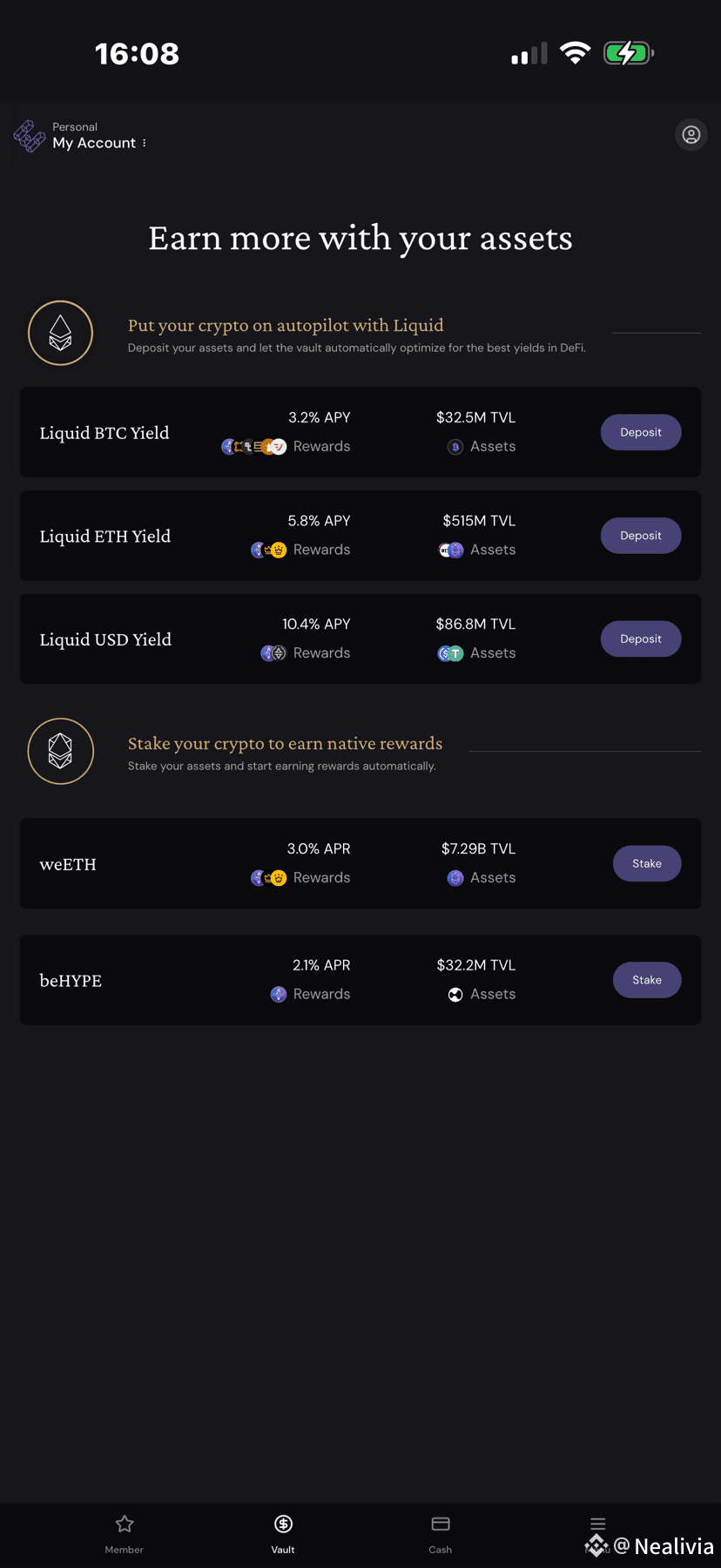1️⃣ Put your crypto on autopilot with Liquid (自動化收益金庫)這系列的特色是「Autopilot(自動駕駛)」,你只需存入資產,Vault 會自動在 DeFi 協議中尋找最佳收益策略。