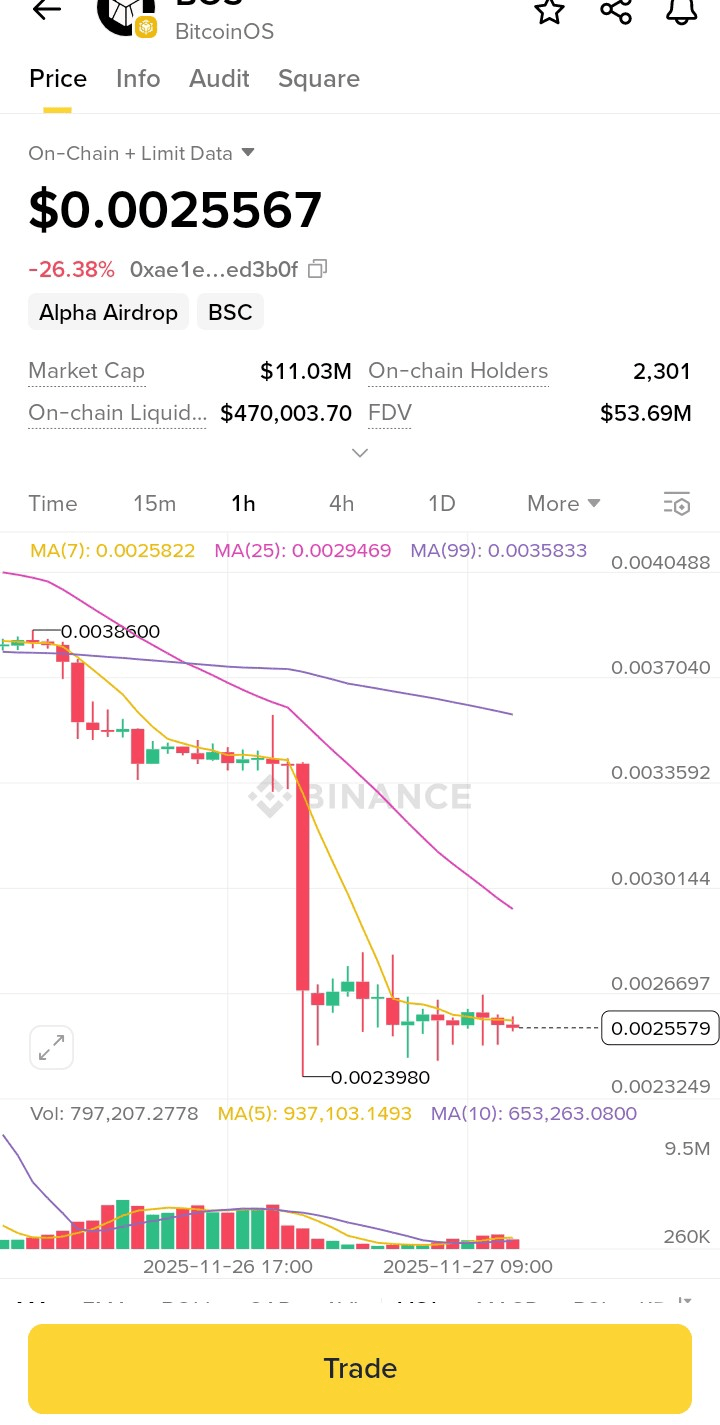 Dopo una correzione brusca, BOS è entrato in una fase di consolidamento — un passo importante prima di un potenziale recupero. I nostri aggiornamenti sull'ecosistema, il coinvolgimento dell'Alpha Airdrop e i prossimi rilasci mirano a rafforzare il valore a lungo termine.