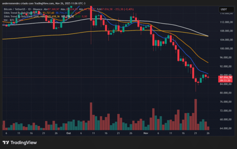 Il prezzo del Bitcoin oggi si aggira intorno ai 87.000 dollari (durante la scrittura di questo articolo).