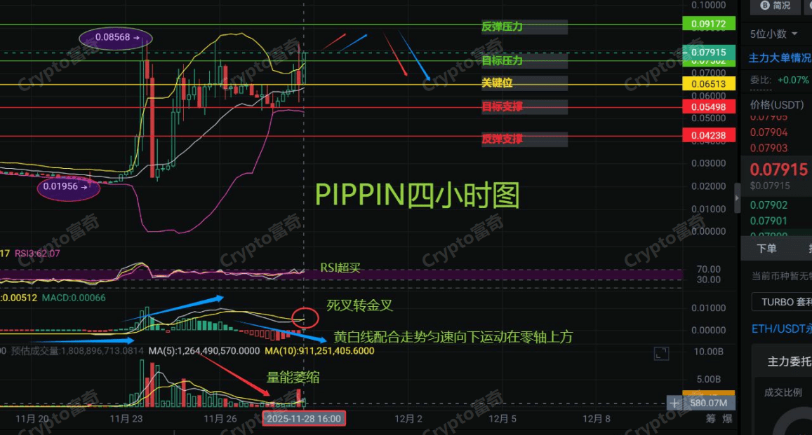 Ragazzi, sono Fuchi! Ho appena scoperto $PIPPIN un segnale chiave: dopo un'impennata del 47%, il MACD ha completato la "croce morta in croce d'oro" sopra l'asse zero, questa è una tipica forma di continuazione rialzista!