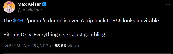 “Il $ZEC pump-and-dump è ufficialmente FINITO.