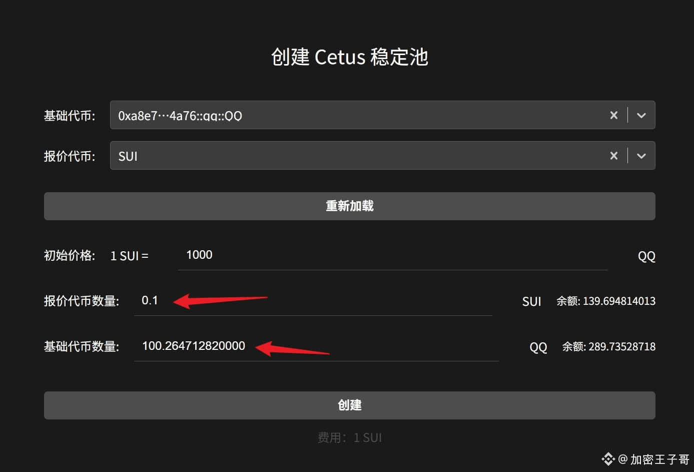 填写好加池的报价代币数量后,会自动计算出基础代币数量。