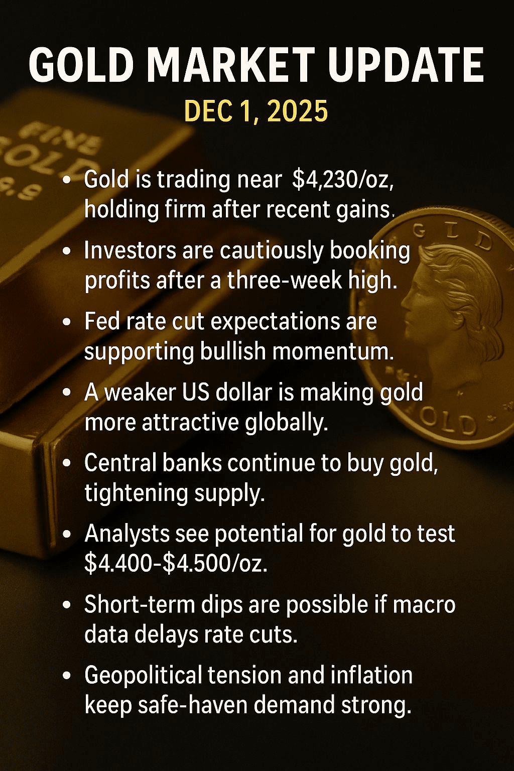 *Aggiornamento sul mercato dell'oro – 1 dicembre 2025 (10 righe)*