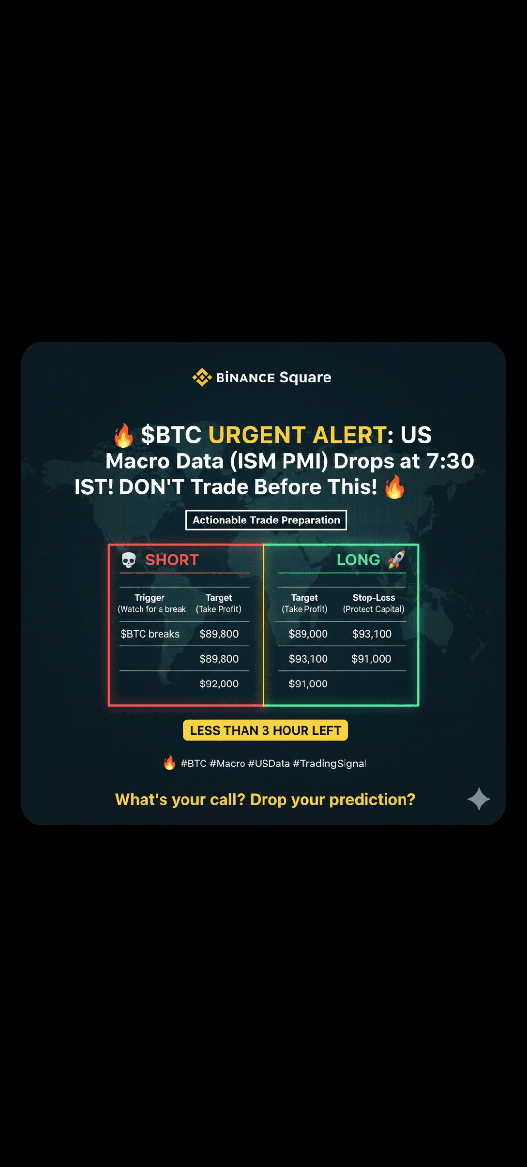 Bull Run (Dati Deboli): Se il numero ISM è debole (sotto 48.0), alimenta la certezza sui tagli dei tassi da parte della Fed. Questo è il risultato più rialzista e potrebbe lanciare $BTC passati $93,000 in pochi minuti!