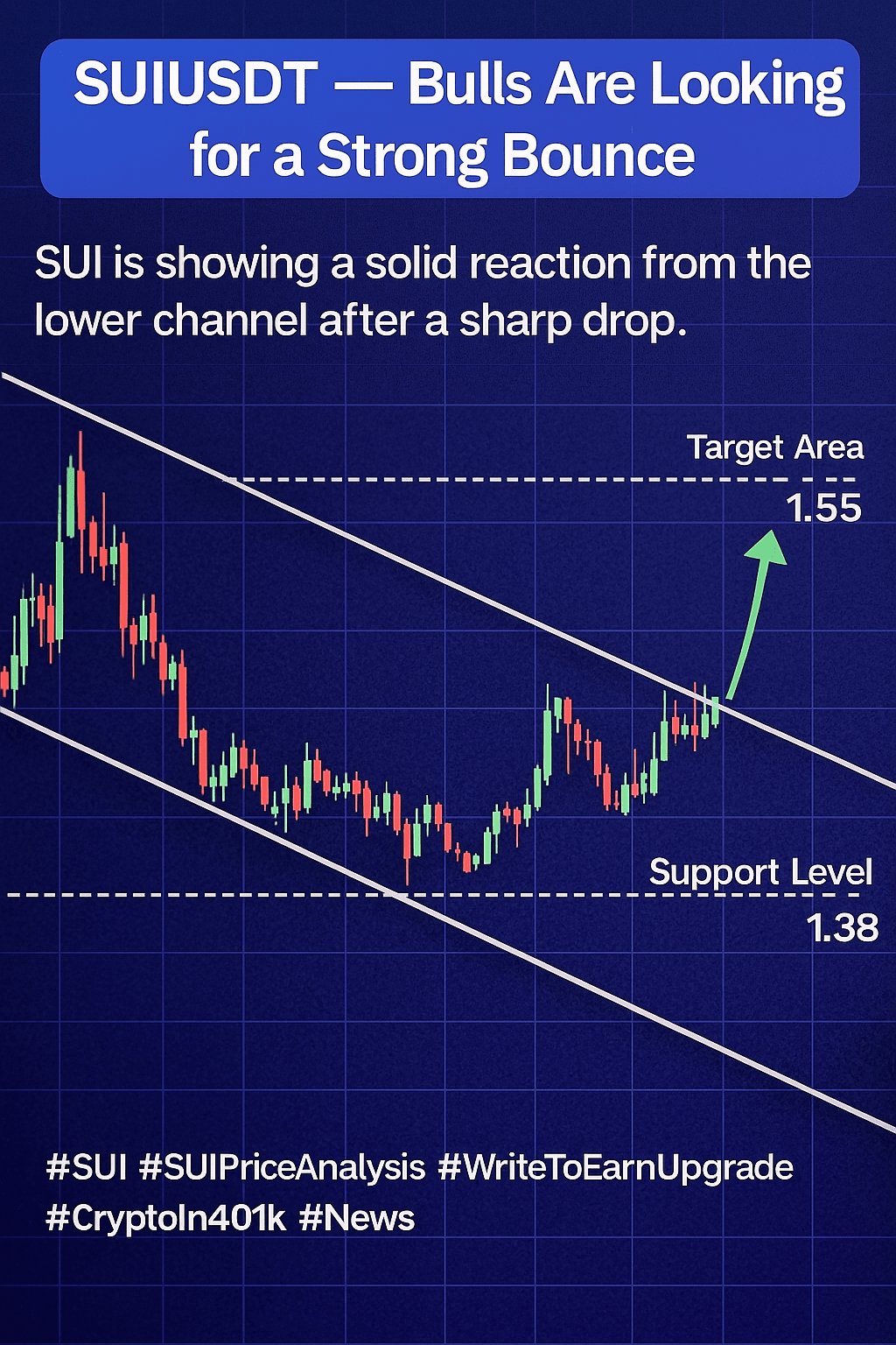$SUI sta mostrando una reazione solida dal canale inferiore dopo un forte calo. Il trend ribassista più ampio offre ancora spazio per un recupero significativo se i compratori rimangono attivi. Se il momentum si mantiene, il prezzo potrebbe risalire verso la zona 1.55 vicino alla diagonale superiore.