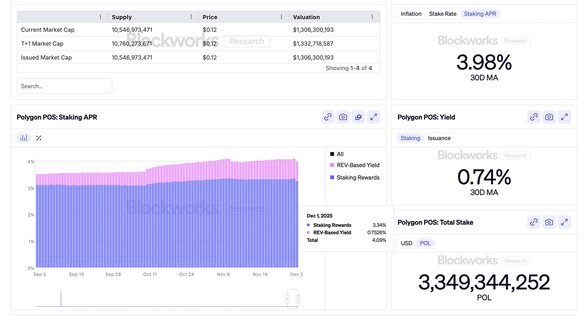 L'attuale rendimento dello staking è di circa il 4%, con lo 0,73% già proveniente da puro REV. Rispetto ad altre reti, questo componente di puro reddito è molto forte. E crescerà con più attività, airdrop e commissioni AggLayer.