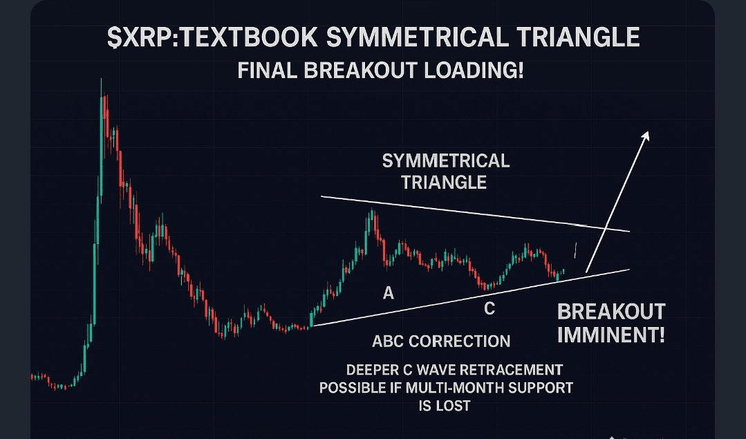 Questo modello indica che XRP è strutturalmente vicino alla fine del suo percorso correttivo, allineandosi con l'apice che si sta stringendo del Triangolo Simmetrico.
