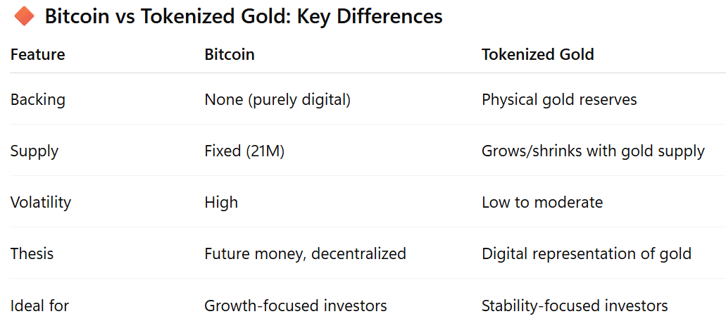 Nell'evoluzione dell'economia digitale odierna, due asset dominano spesso il dibattito: Bitcoin e oro tokenizzato. Entrambi sono potenti a modo loro, ma servono a scopi diversi, attraggono diversi tipi di investitori e rappresentano diverse filosofie del valore.