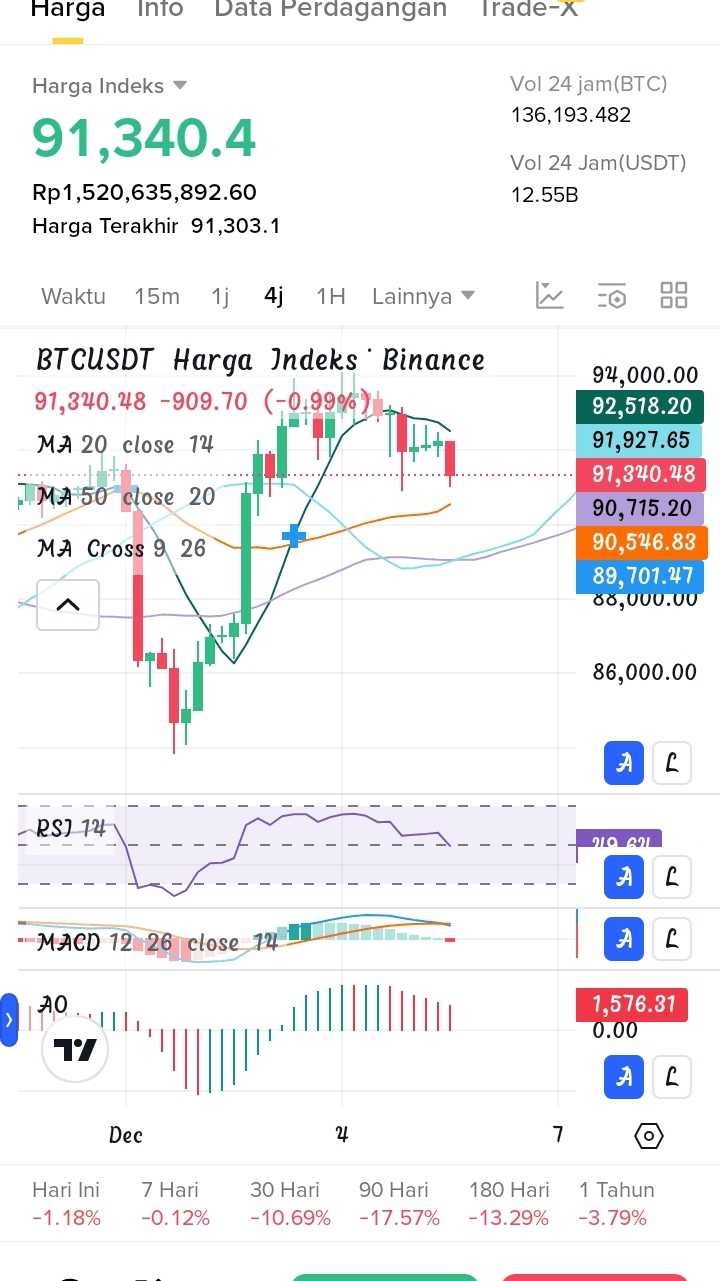 - Prezzo Attuale: circa $91,340.4 (dati più recenti), in calo del ~0.56% nelle ultime 24 ore.