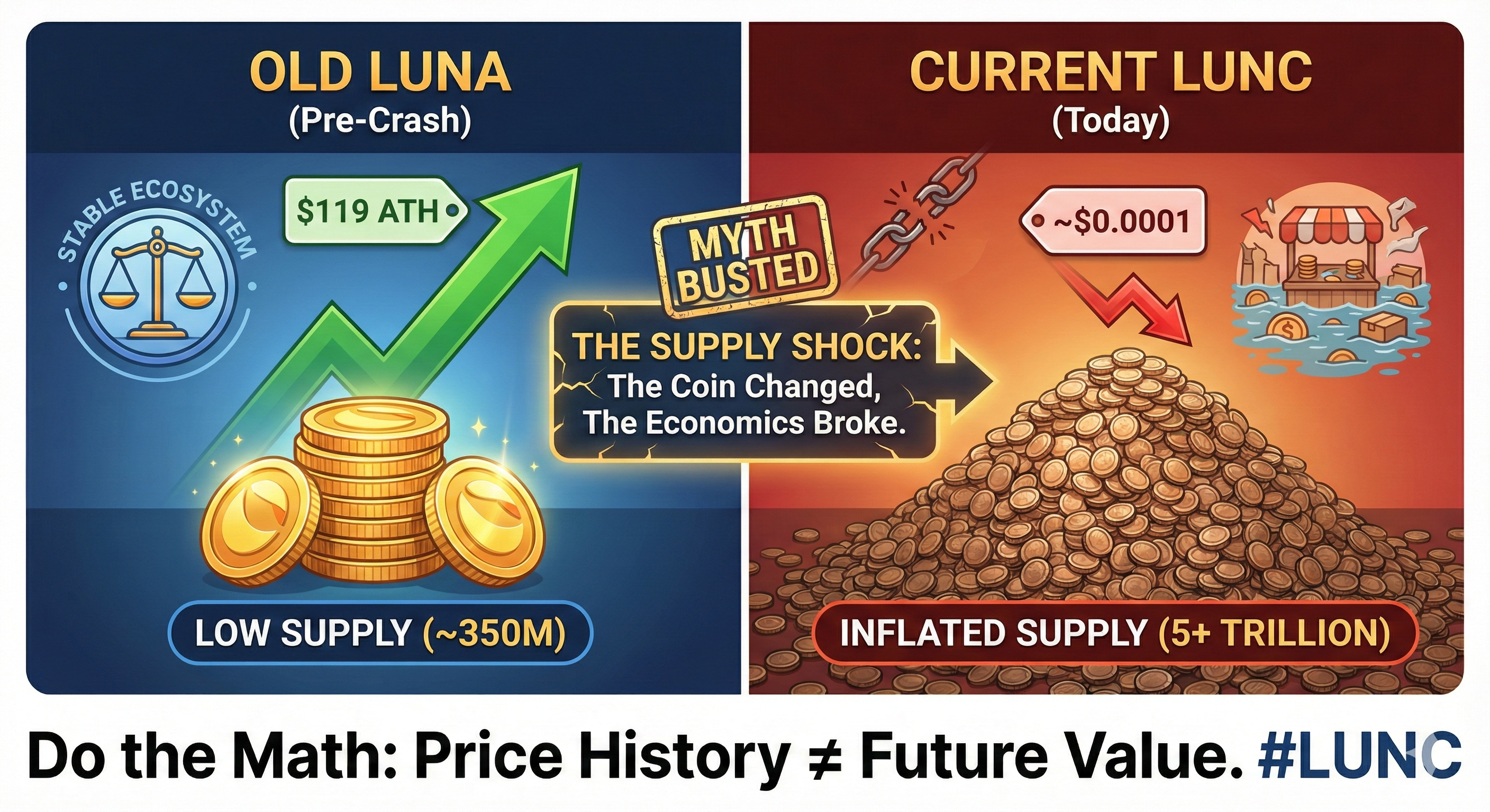 Molti credono ancora $LUNC tornerà al suo massimo storico di $119. Ecco la verità matematica sul perché sia fuorviante: