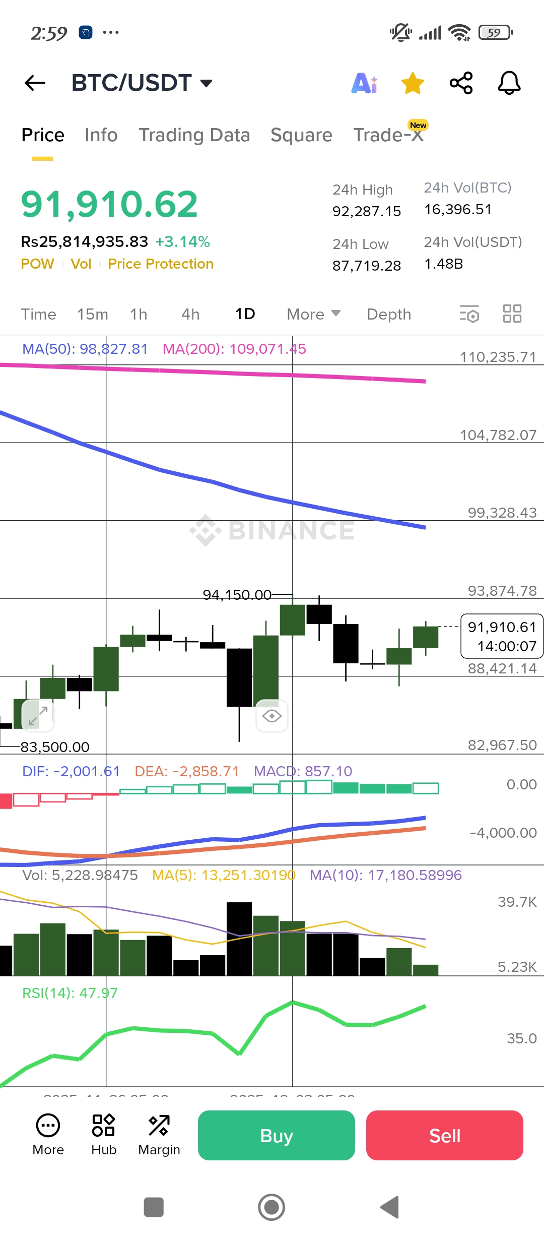 Il prezzo è ancora al di sotto della MA a 50 giorni, il che significa che il trend a breve termine è ribassista.