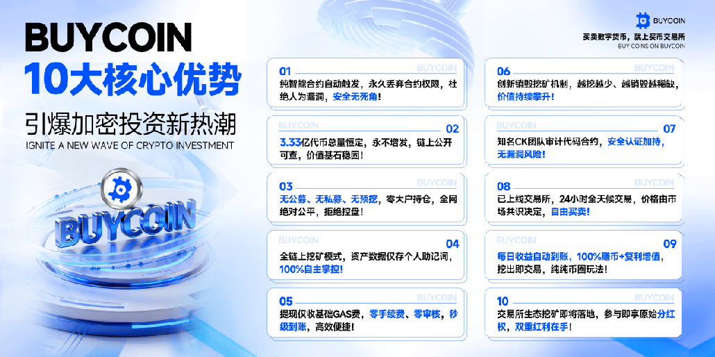La borsa BUYCOIN e il suo token ecologico principale BCT sono i definitori di questo nuovo paradigma. Non è solo un'innovazione tecnologica, ma una rivoluzione del pensiero riguardo la sovranità degli asset, la governance della comunità e la distribuzione del valore. Questo articolo analizzerà sistematicamente i dieci principali vantaggi competitivi di BCT, rivelando perché è considerato il punto di riferimento del valore per le prossime generazioni di token di piattaforma.