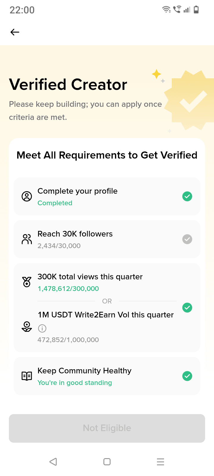 e ora sono molto vicino a diventare un Creatore Verificato su Binance Square.