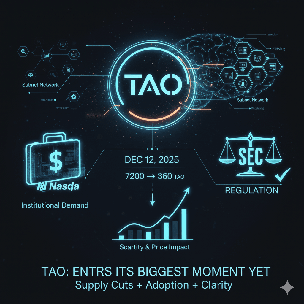L'arrivo simultaneo di un taglio dell'offerta (halving), un'adozione istituzionale concreta, una crescente chiarezza normativa e una solida base di rete pongono TAO in una posizione estremamente unica e favorevole. Mentre il mercato delle criptovalute più ampio rimane lento e volatile, questo allineamento di forze suggerisce che TAO è pronto a entrare in una nuova fase di crescita all'inizio del 2026, possibilmente più velocemente di quanto molti si aspettino.