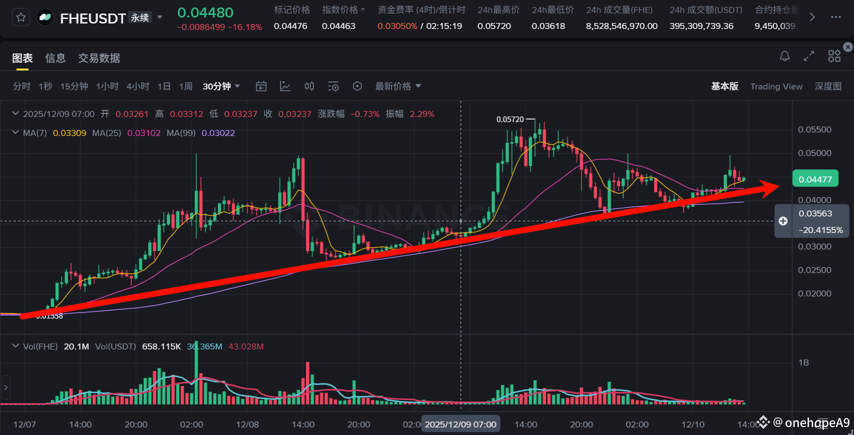 最近在Binance 合约交易量排行榜上发现了一个新标的, $FHE 。
