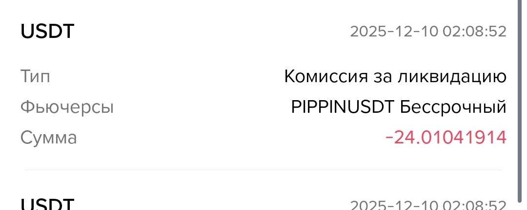 Ha iniziato a capire e a cercare cosa stesse succedendo, si è scoperto che hanno sottratto -24 usdt come commissione per la liquidazione di questa posizione!!!