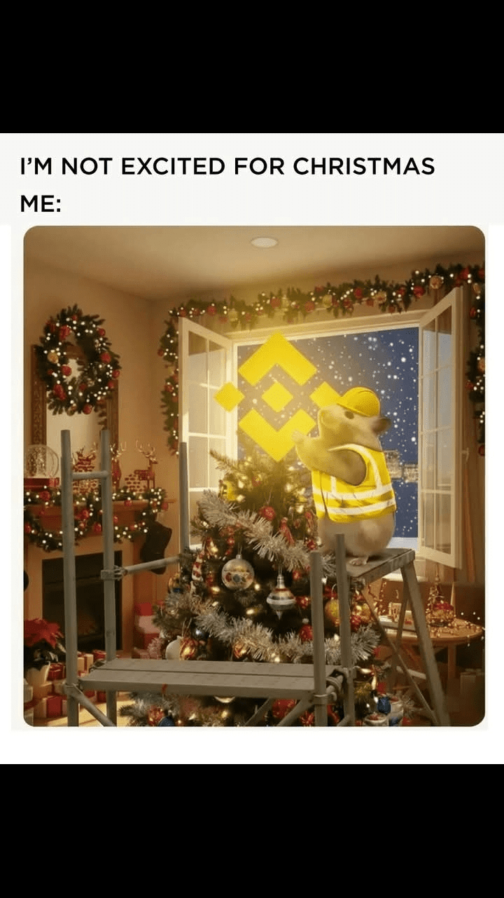 Io: preparando l'albero come se lo spirito natalizio venisse con il logo di Binance che illumina la finestra. 😄💛