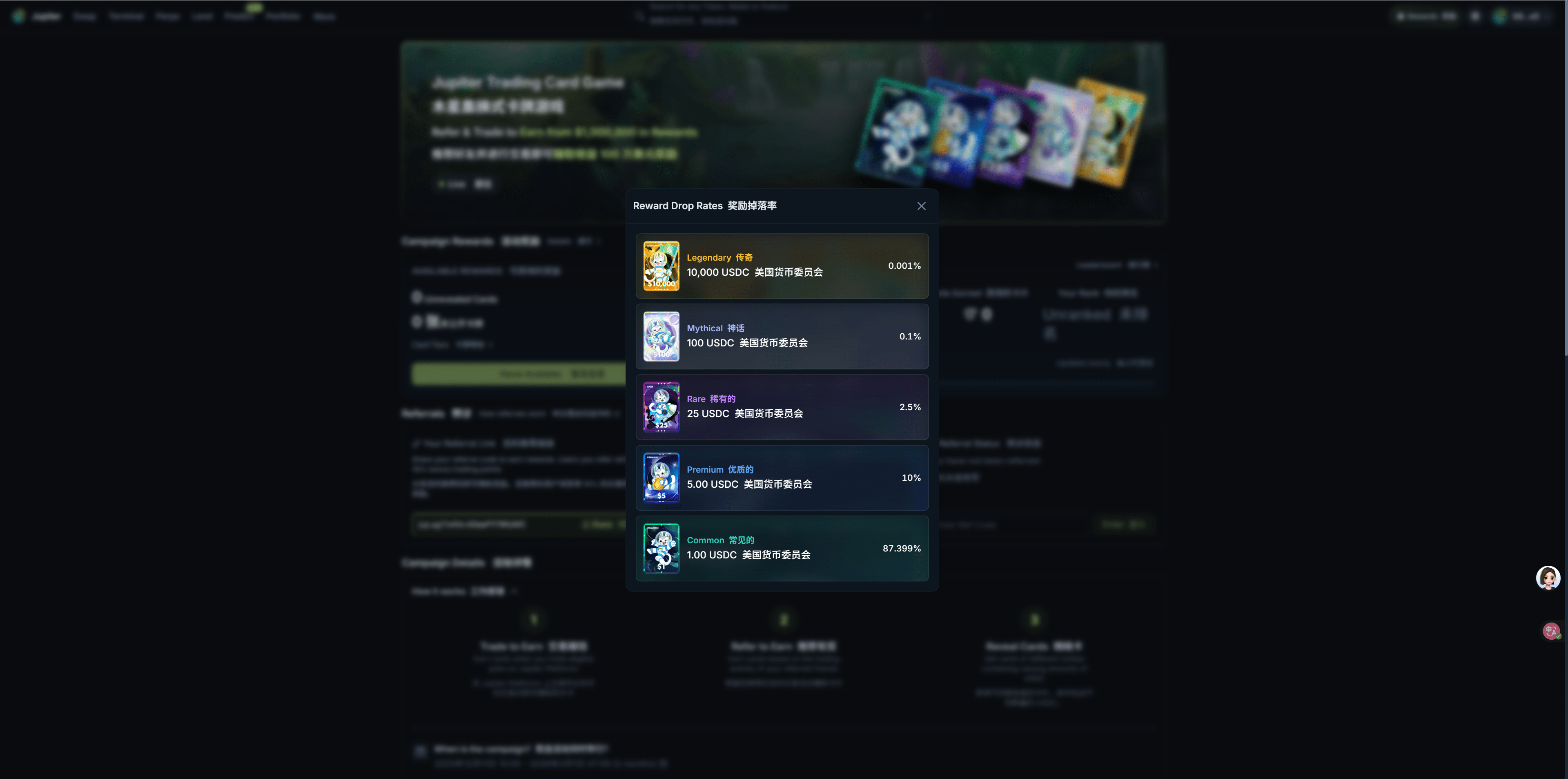 Le carte possono essere svelate e riscattate solo quando collegate tramite Jupiter Wallet o Jupiter Mobile. Se utilizzi altri portafogli per le transazioni, puoi comunque importare il portafoglio per riscattare le ricompense; questa iniziativa vale comunque la pena di essere intrapresa.