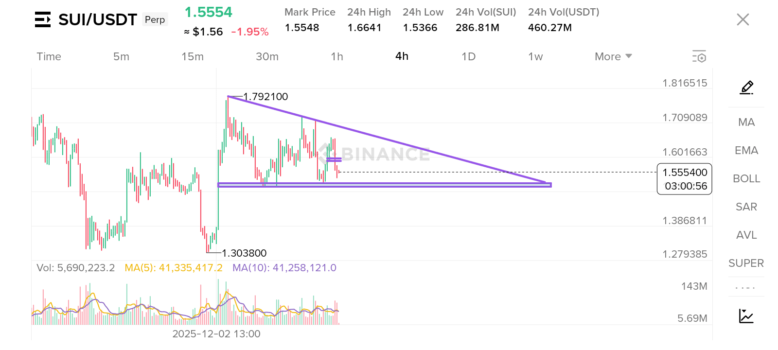 $SUI abhi il triangolo simmetrico sta consolidando esattamente al punto finale.