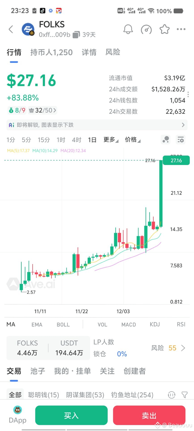 FOLKS在过去24小时内实现了77.39%的惊人涨幅,成为Bitget期货市场的最大赢家。这波强势上涨背后有三大核心驱动: