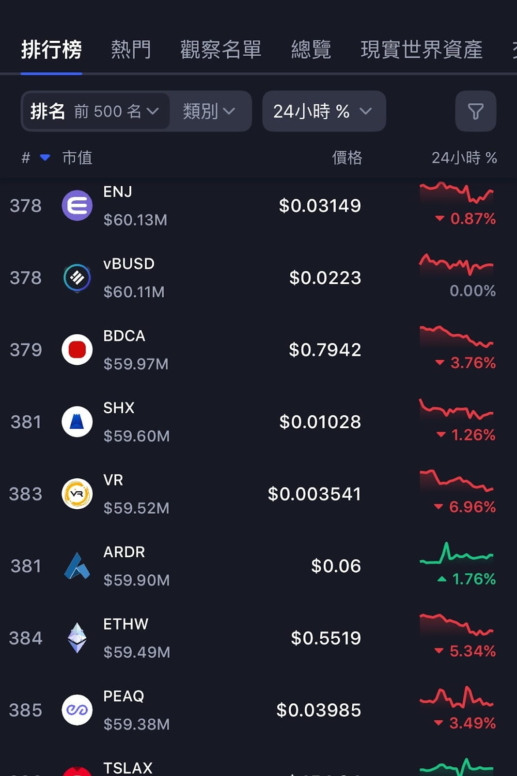 Una capitalizzazione di mercato di 60 milioni di dollari si colloca circa tra le prime 380 posizioni della rete.